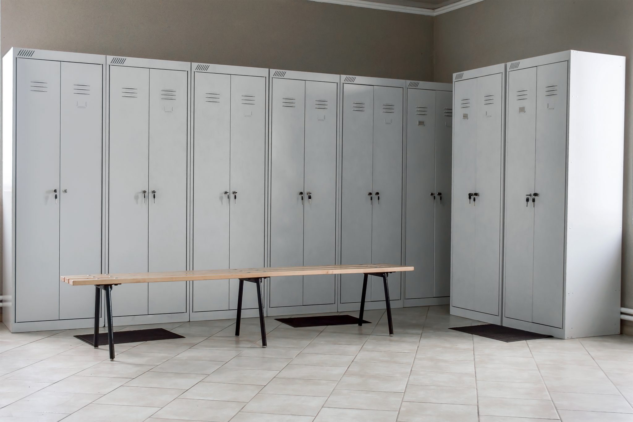Bei der Kleidungsausgabe verfügt jeder Benutzer über ein persönliches Schließfach mit eigenem Schlüssel. Er erhält pro Schloß zwei Schlüssel. Das Auffüllen der Verteilschränke erfolgt durch einen Arbeitsgang mit einem Haupt-Serviceschlüssel für die Haupttür.